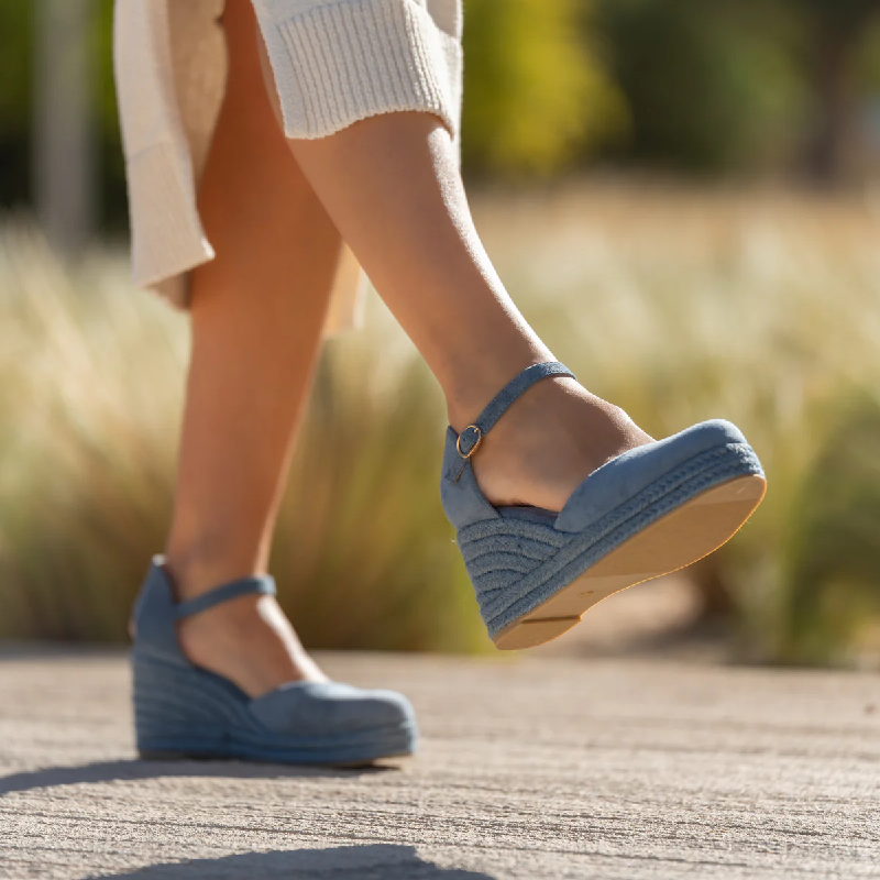 Εσπαντρίγια πλατφόρμα . Διαθέτει σχοίνινη σόλα. Έχει κανονική φόρμα, δένει στο ύψος του αστράγαλου με μπαρέτα με μαλακό πάτο.
