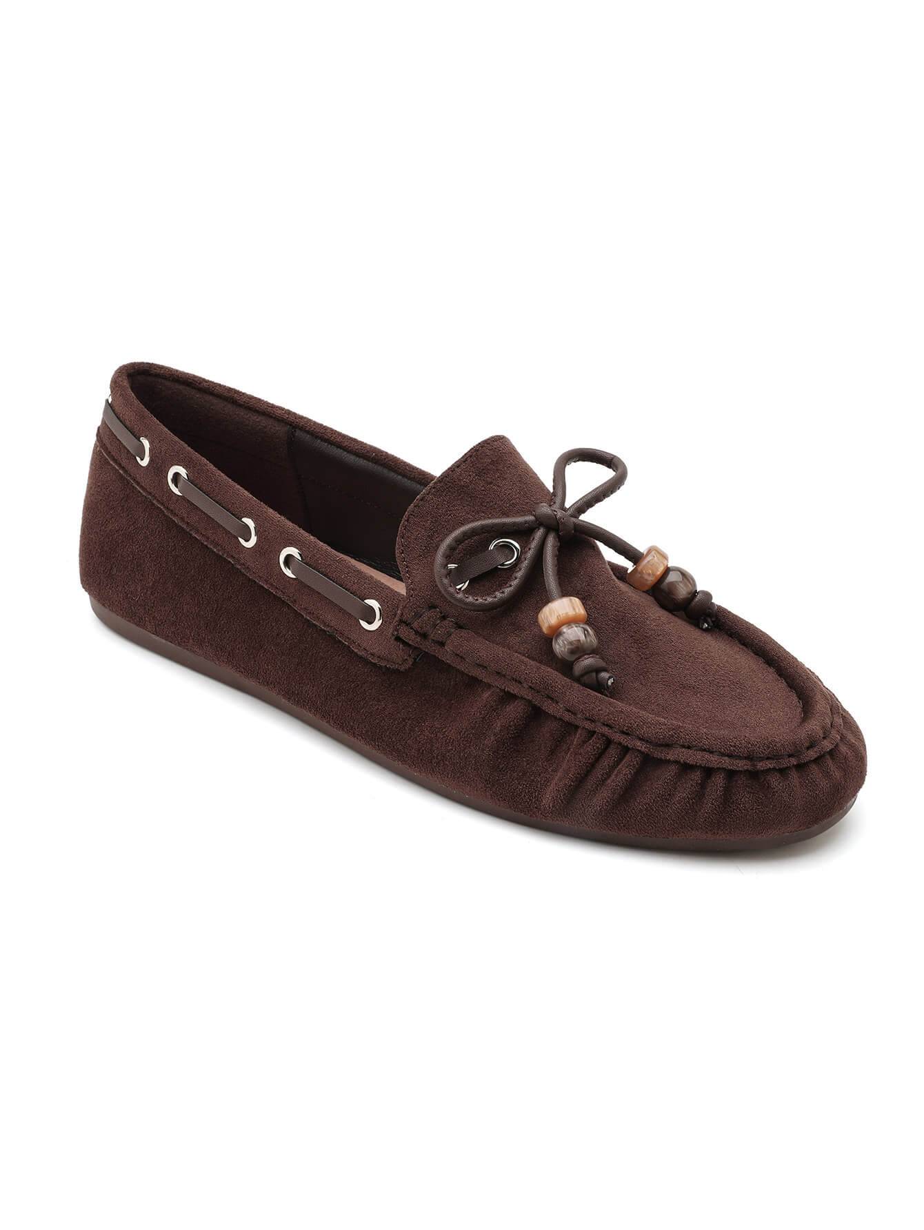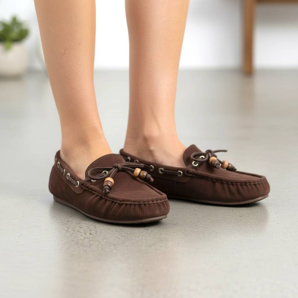 Κομψό γυναικείο μοκασίνι σε καφέ απόχρωση, κατασκευασμένο από συνθετικό με υφή καστόρι. Διαθέτει διακοσμητικό κορδόνι και λεπτομέρειες που χαρίζουν φυσικό χαρακτήρα και άνεση στην καθημερινή χρήση.Ιδανική επιλογή για καθημερινές εμφανίσεις, συνδυάζει πρακτικότητα και διακριτική κομψότητα από το πρωί έως το βράδυ.
