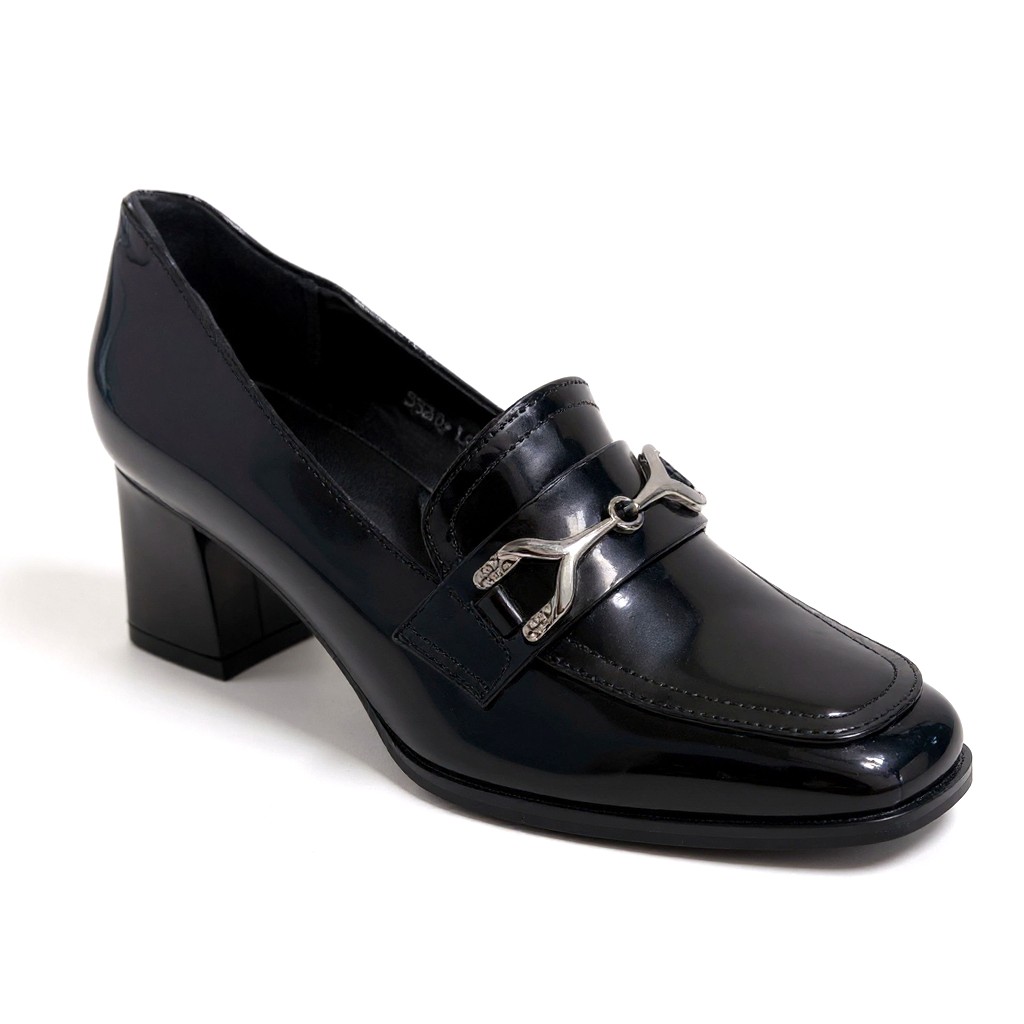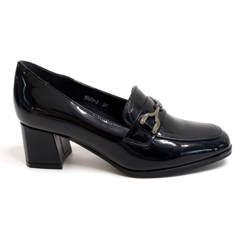 Κομψά loafers με λουστρίνι υφή και τετράγωνο τακούνι για σταθερότητα και άνεση.