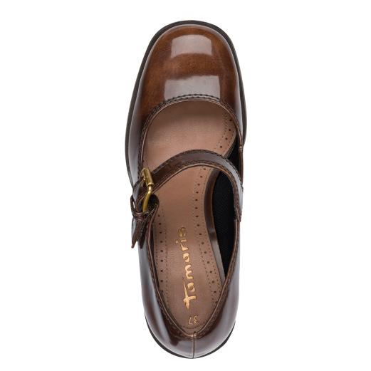 Tamaris mary jane λουστρίνι με μπαρέτα – Καφέ