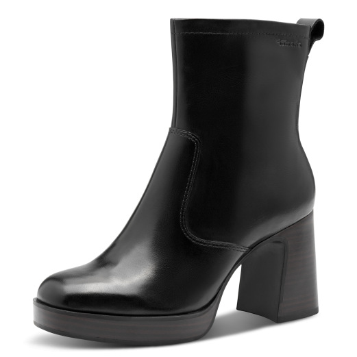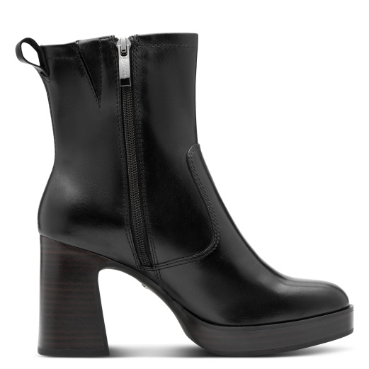 Μποτάκια δερμάτινα Tamaris με ψηλό τακούνι – Μαύρο