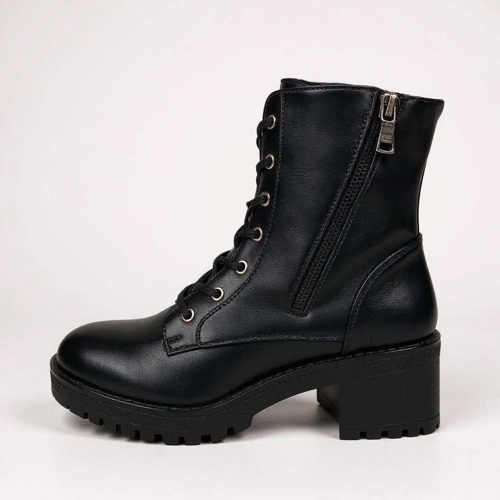 Αναβάθμισε το καθημερινό σου look με αυτό το μαύρο μποτάκι με κορδόνια. Διαθέτει χαμηλό τετράγωνο τακούνι και τρακτερωτή σόλα για σταθερότητα και άνεση, ενώ το φερμουάρ στο πλάι το κάνει εύκολο στο φόρεμα.