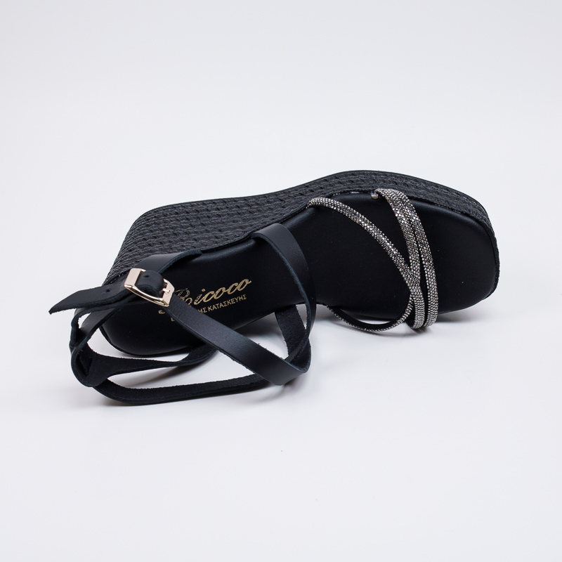 Αναδείξτε τη θηλυκότητά σας με αυτές τις κομψές δερμάτινες πλατφόρμες, χειροποίητης ελληνικής κατασκευής. Με μαύρη σόλα και φινετσάτα δερμάτινα λουράκια σε μαύρο είναι ο απόλυτος συνδυασμός άνεσης και στυλ.