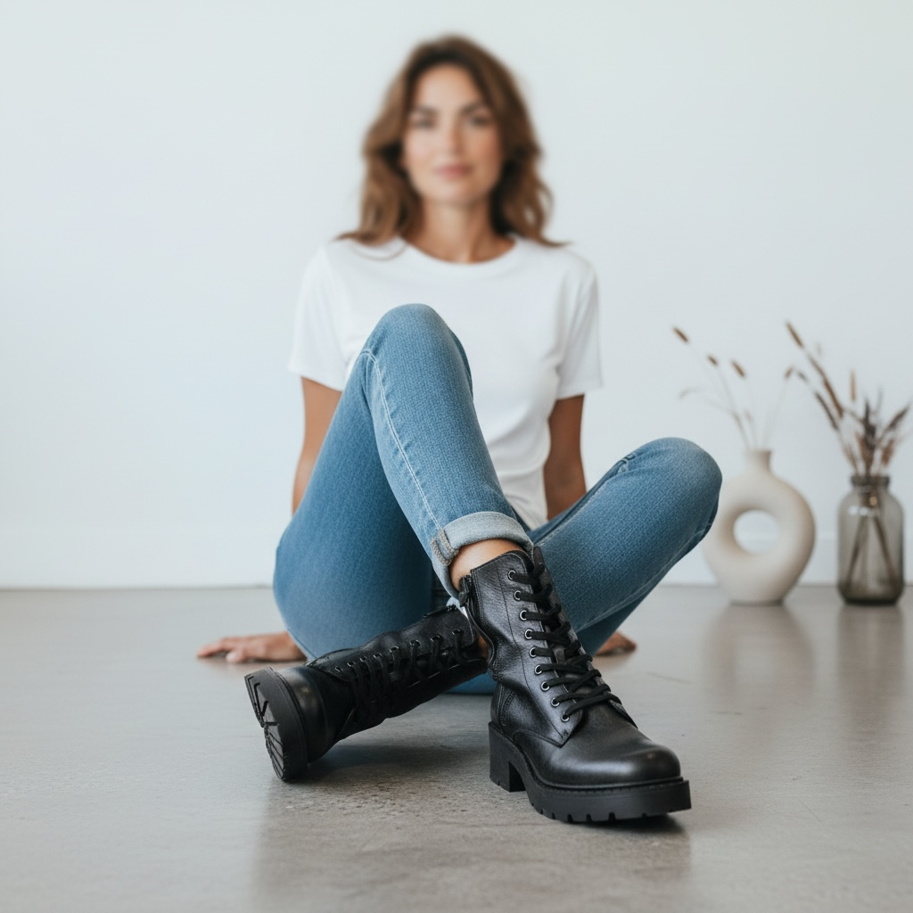Combat Μποτάκι με Κορδόνια - Μαύρο