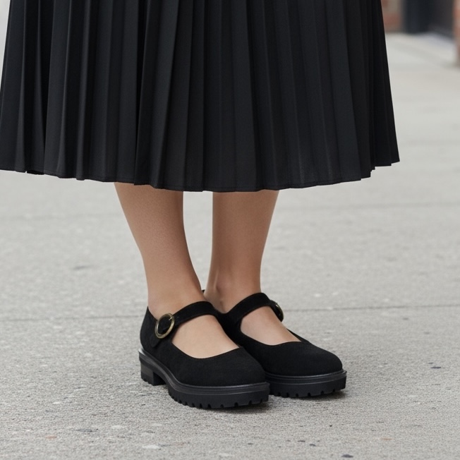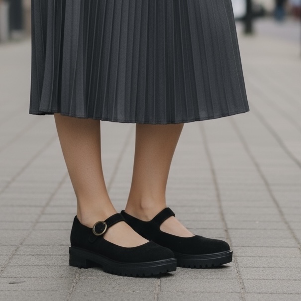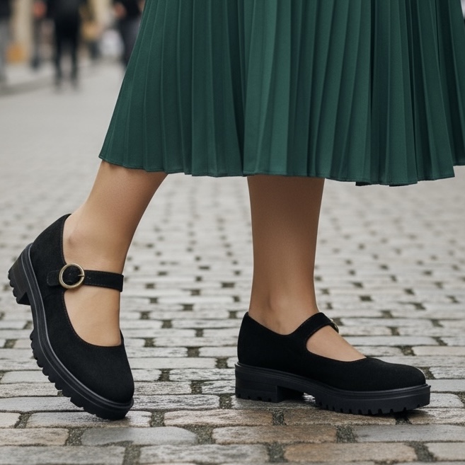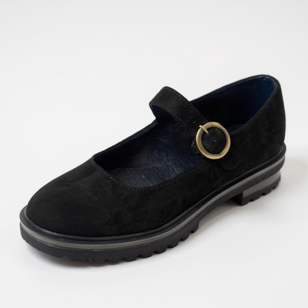 Κομψή και άνετη μπαλαρίνα σε στυλ Mary Jane, από αυθεντικό δέρμα ελληνικής κατασκευής.
