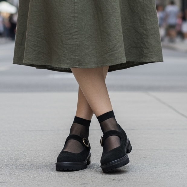 Διαθέτει ρυθμιζόμενο λουράκι με στρογγυλή αγκράφα και σταθερή αντιολισθητική σόλα για καθημερινή άνεση.