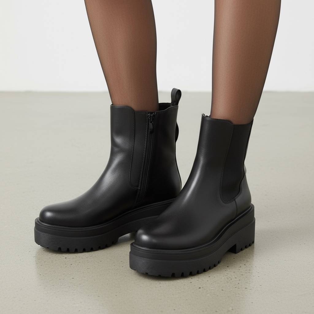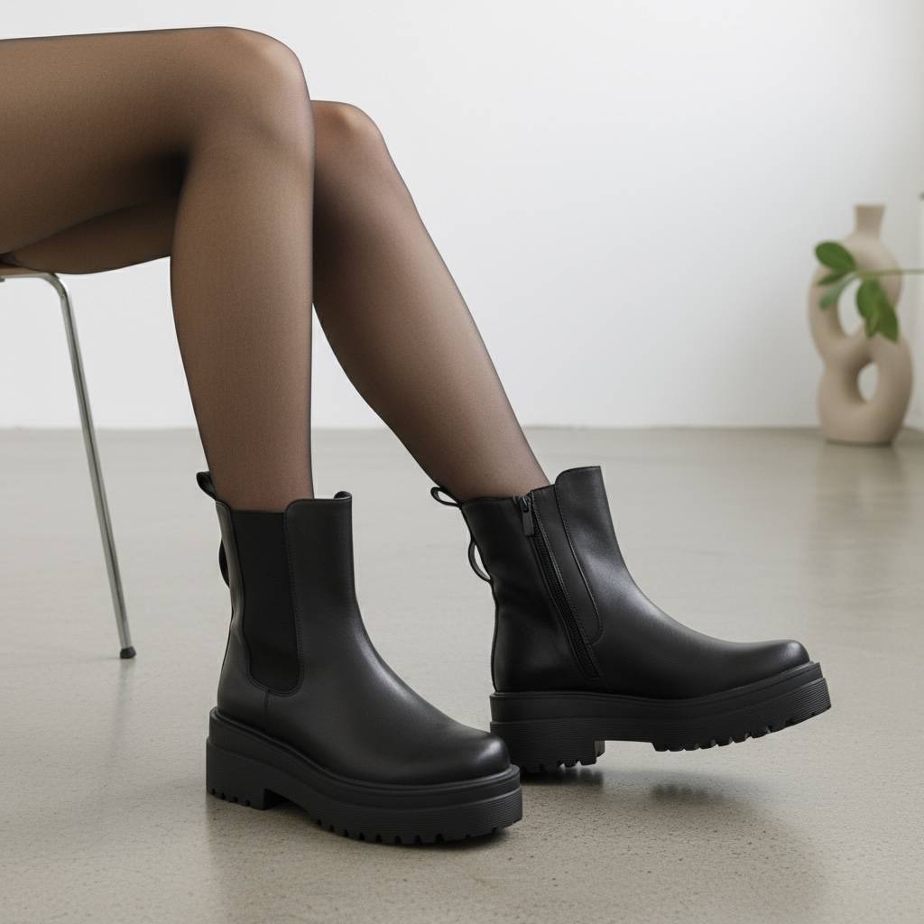 • Chelsea Μποτάκια με chunky Σόλα- Μαύρο