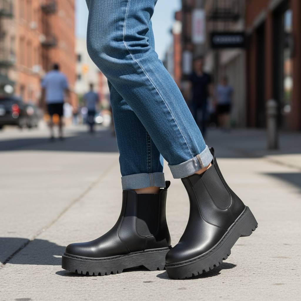 Το απόλυτο trend της σεζόν! Chelsea μποτάκι με ελαστικά πλαϊνά, ψηλή τρακτερωτή σόλα και minimal σχεδιασμό που συνδυάζεται εύκολα με κάθε look.