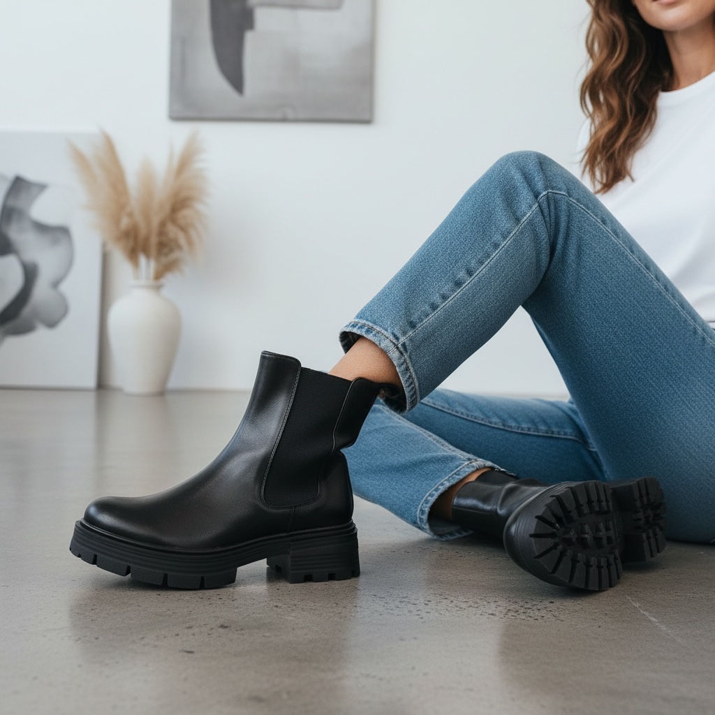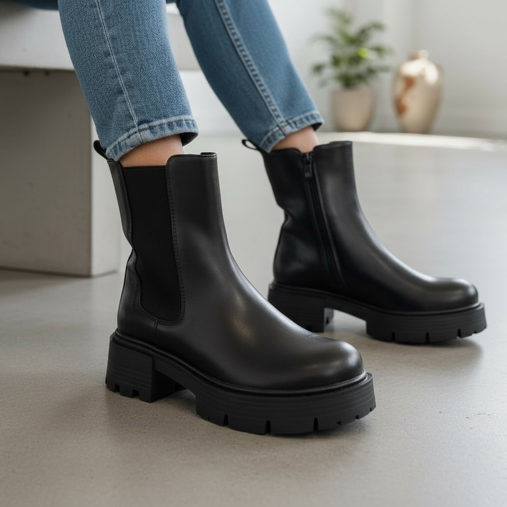 Chelsea Μποτάκι με Chunky Σόλα – Μαύρo