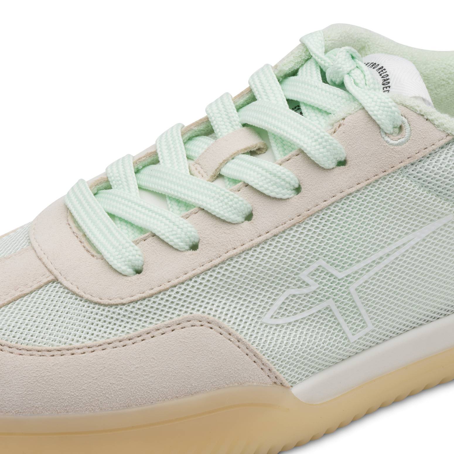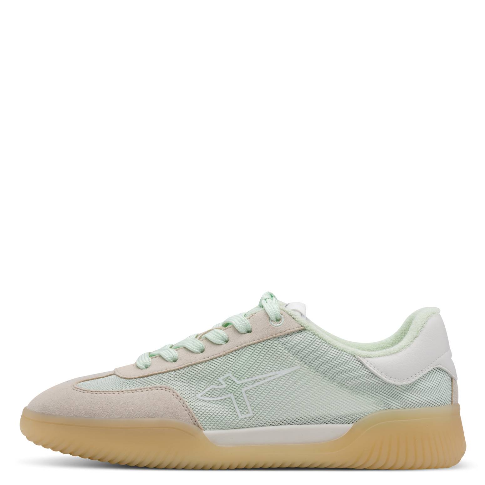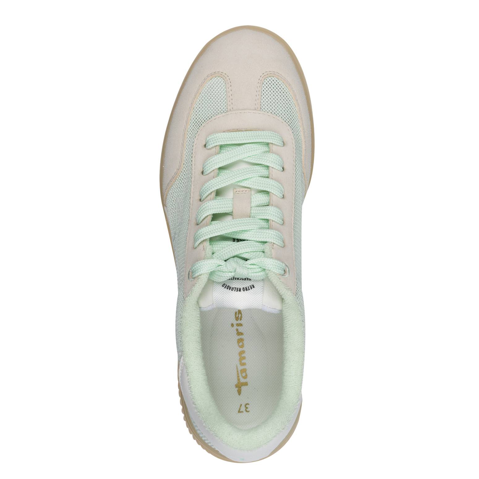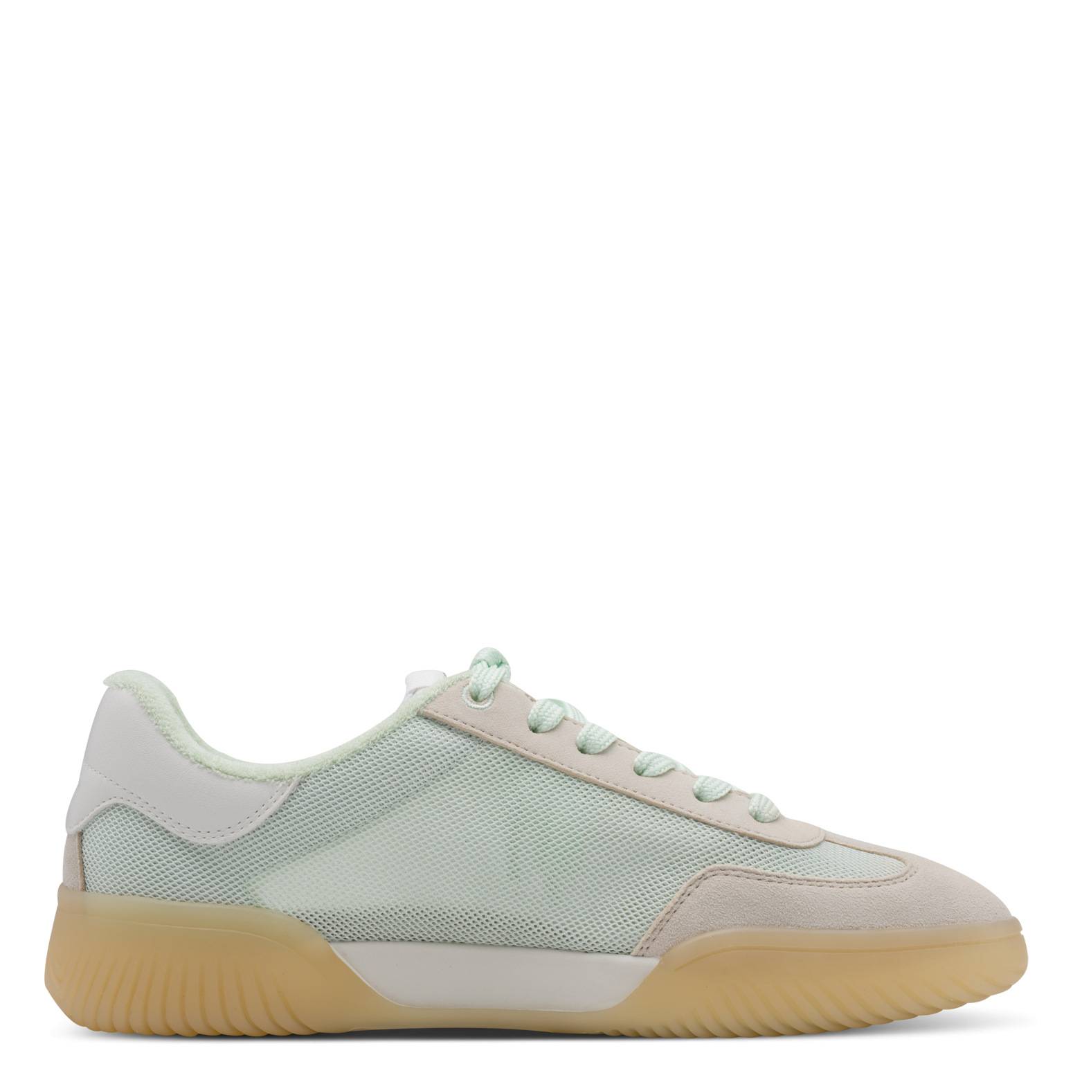 Γυναικείο sneaker Tamaris σε mint–μπεζ απόχρωση, κατασκευασμένο από γνήσιο δέρμα σε συνδυασμό με συνθετικά υλικά και mesh, προσφέροντας ισορροπία ανάμεσα σε άνεση, αντοχή και καλή διαπνοή. Η ελαφριά σόλα χαρίζει σταθερότητα και ξεκούραστο περπάτημα στην καθημερινή χρήση.